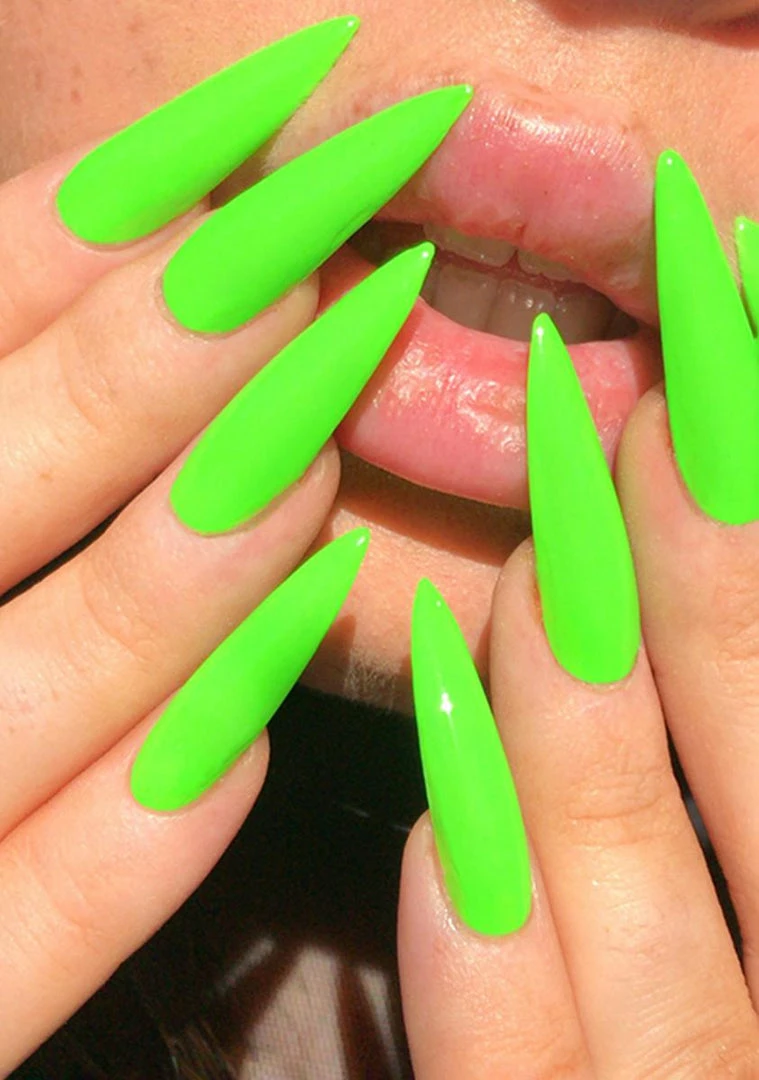cuz you’re toxic but I love it. This bright green nail polish is quick drying, chip resistant, and lasts up to 7 days.