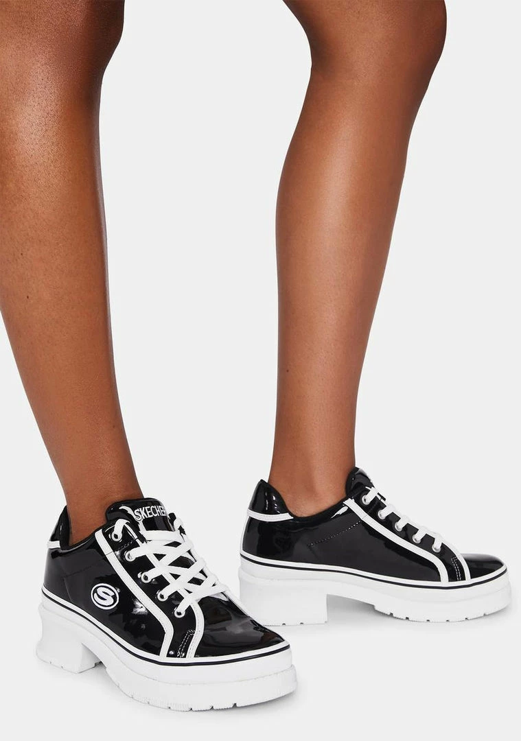 cuz youΓ’ΒΒre a total heartthrob, babe. Keep Γ’ΒΒem crushinΓ’ΒΒ on ya in these rad low-top sneakers that have block heels, treaded soles and lace-up closures.