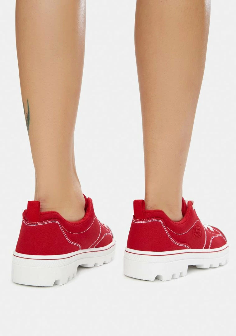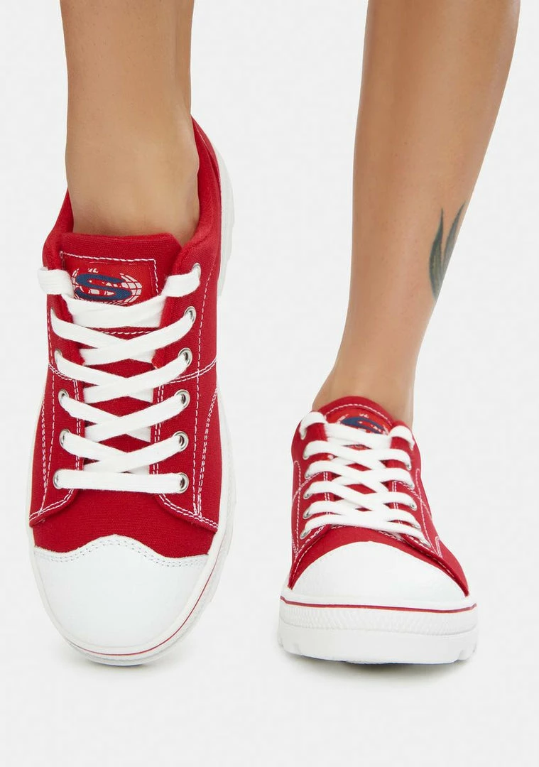 cuz ya always stay movin’ bb! Go where ya want when ya want in these supa cute heeled sneakers with a rubber toe design and lace up construction.