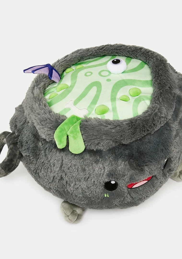 need some toil and trouble? This cauldron-themed plush toy has a faux fur construction and a bubbly mixture at top.